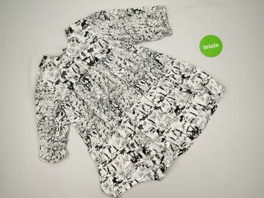 Długi rękawSukienka damska z długim rękawem, w całości w biało‑czarny nadruk. Wzór łączy dwa motywy: