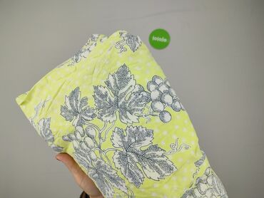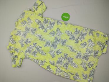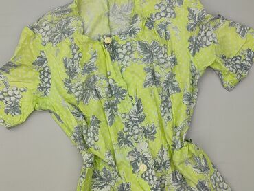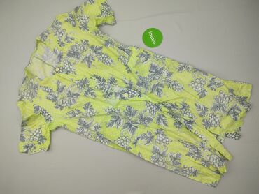 Sukienka damska z krótkim rękawem, rozmiar 46. - Wzór: energetyczny, abstrakcyjny motyw liści w kolorach żółtym, białym i szarym na granatowym tle. - Krój: luźny, swobodny; odcięcie w talii z del...