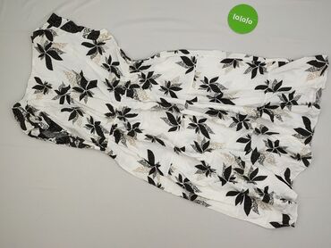 Sukienka maxi z lekkiego, półtransparentnego szyfonu w kolorze białym z delikatnym, roślinnym printem w odcieniach beżu/złota. - Krój: luźny, zwiewny, długość maxi - Rękawy: krótkie, szerokie - D...