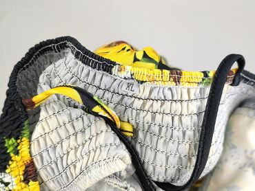 Sukienka damska w kwiaty, rozmiar XL - Fason: rozkloszowany, z zaznaczoną talią; delikatnie falbaniasty dół - Dekolt: okrągły z ozdobnymi, krzyżującymi się paseczkami na plecach - Rękawy: krótkie ...