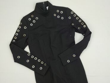 Czarna sukienka damska z długim rękawem, o jednolitym kolorze. Sukienka posiada okrągły dekolt i jest wykonana z gładkiego, elastycznego materiału, co zapewnia komfort noszenia i dopasowanie do syl...