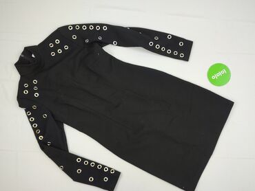 Sukienka damska z wiskozy, rozmiar 36. - Kolor: czarny (delikatna, drobna faktura/prążek na tkaninie) - Materiał: 100% wiskoza (metka „Viskose/Viscose/Viscosa”) - Krój: rozkloszowany dół z marszcz...