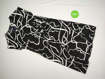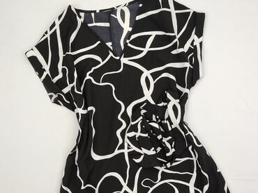 Sukienka damska midi w drobny, czarno-biały wzór. - Krój: rozkloszowany dół z marszczeniami, talia podkreślona paskiem wiązanym z tego samego materiału. - Góra: dekolt w kształcie litery V, krótki...Stan: