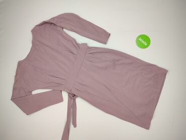 Sukienka damska MOE, rozmiar M - Kolor: pudrowy róż - Krój: ołówkowy/mediolong, podkreślona talia z szerokim pasem - Rękawy: krótkie - Dekolt: łagodny V z zakładkami modelującymi przód - Długość: ...