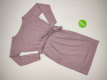 Sukienka damska, rozmiar L - Kolor: pudrowy róż - Krój: rozkloszowana, z doszywanymi, marszczonymi falbanami; okrągły dekolt; długie rękawy z delikatnym ściągnięciem przy mankietach - Zapięcie: po...