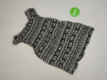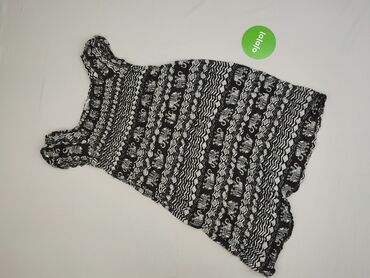 Sukienka AIRISA, rozmiar M/L - Krój: letnia, lekko rozkloszowana, z falbaną przy dekolcie i cienkimi ramiączkami - Wzór: gęsty, kolorowy motyw kwiatowy na czarnym tle - Materiał: 95% bawełna, 5% e...