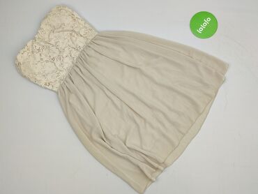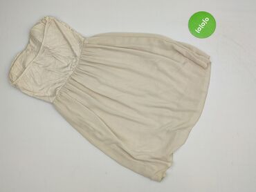 Sukienka damska bez rękawów w kolorze jasnego beżu/ecru. - Fason: lekko rozkloszowany, z falbaną na dole. - Góra z dekoracyjną, ażurową koronką z przodu i z tyłu. - Dekolt okrągły z listwą guzik...