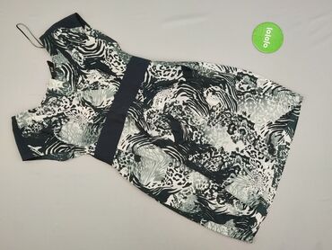 Sukienka damska F&F, rozmiar EU 38 (UK 10) - Krój: mini, na ramiączkach spaghetti - Wzór: czarno-biały, geometryczny/etno, układ w zygzaki - Materiał: 100% poliester (lekki, miękki, nieelastyczny ...
