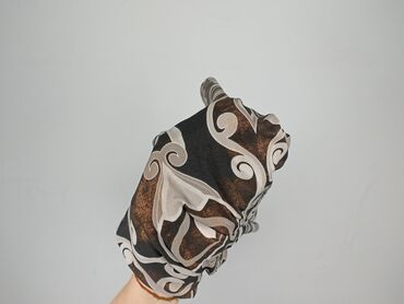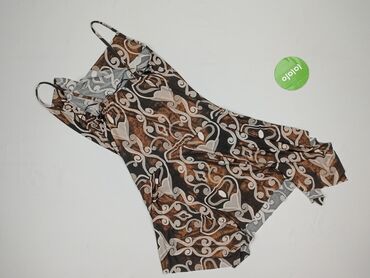Sukienka na ramiączkach z elastyczną, mocno marszczoną górą (smocking). Lekka, zwiewna tkanina półprzezroczysta, z falującym, abstrakcyjnym wzorem w odcieniach czerni, beżu i brązu. Cienkie ramiącz...