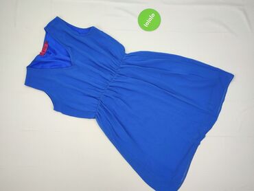 Niebieska sukienka damska o długości mini, z dekoltem w kształcie litery V, bez rękawów. Fason sukienki dopasowany w talii, z rozkloszowanym dołem, co nadaje jej elegancki i jednocześnie swobodny c...Stan: