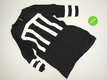 Sukienka damska w czarno-biały wzór geometryczny - Krój: rozkloszowana, z doszywanymi falbanami w dole i na rękawach - Długość: mini/za kolano (w zależności od wzrostu) - Rękaw: 3/4 zakończony fal...