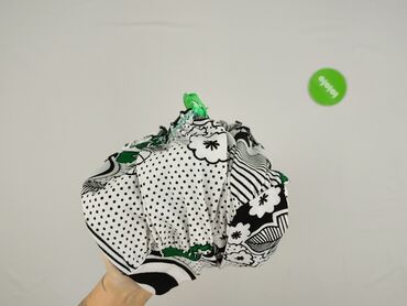 - Wzór i kolorystyka: czarno‑biały print łączący kropki, pasy i spiralne motywy z kwiatami; akcenty w kolorze zielonym dodają wyrazistości.