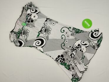 Sukienka damska mini w kwiaty - Fason: długa, rozszerzana ku dołowi; lekko marszczona w pasie, tworzy miękko opadający dół - Dekolt/ramiączka: okrągły dekolt i szerokie ramiączka w kontrastowym, c...