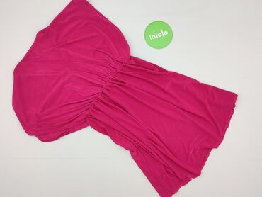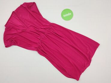Sukienka damska w kolorze fuksji (intensywny róż). - Krój: luźna góra z obniżoną linią talii i marszczoną, rozszerzaną spódnicą. - Rękawy: krótkie, lekko opadające. - Dekolt: okrągły. - Długość: do...