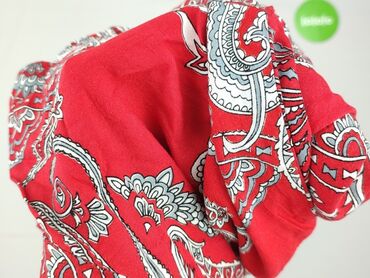 Sukienka na ramiączkach, rozmiar L. - Krój: lekko rozkloszowana, z marszczeniami; ramiączka szerokie, prosty dekolt. - Wzór: patchwork na intensywnie czerwonym tle – mieszanka drobnych kropek, ser...