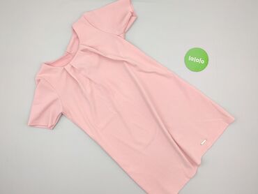 Sukienka mini w kolorze pudrowego różu z ozdobnym wiązaniem - Fason: dopasowana, mini, z krótkim rękawem - Dekolt: szeroki, łagodnie opuszczany na ramiona - Materiał: elastyczna dzianina (miękka, ...Stan:
