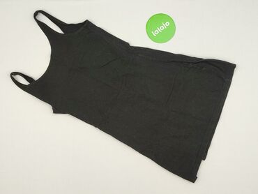 Czarna, prosta sukienka na cienkich ramiączkach (slip dress). - Fason: lekko rozszerzany ku dołowi, długość przed kolano/za kolano (w zależności od wzrostu). - Dekolt: delikatny, w kształcie lite...Stan: