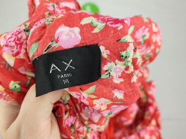Sukienka damska AX Paris, rozmiar 8 (UK) - Czarna baza z wyrazistym, kwiatowym printem (odcienie czerwieni, różu, zieleni, granatu). - Fason z odcinaną talią i rozkloszowanym dołem; subtelne kontr...
