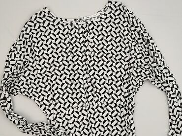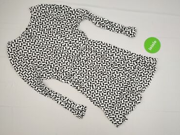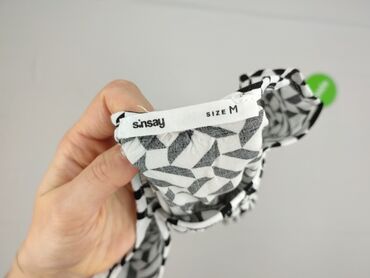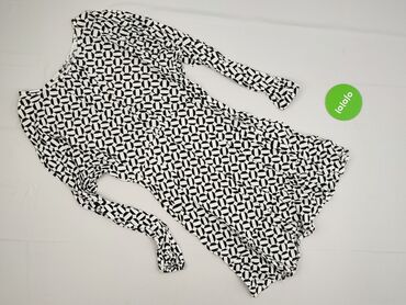 Sukienka Sinsay, rozmiar M - Fason: mini, kopertowy przód z dekoltem w serek - Rękawy: długie - Talia: podkreślona, z ozdobnym węzłem/supłem z przodu - Print: czarno-biały, nieregularny, graficzny...