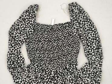 Sukienka damska FB Sister (New Yorker) - Rozmiar: XS - Fason: mini - Kolor: czarny w drobny, biało‑niebieski kwiatowy wzór - Rękawy: krótkie, lekko bufiaste z marszczeniem - Dekolt: prosty/serdusz...