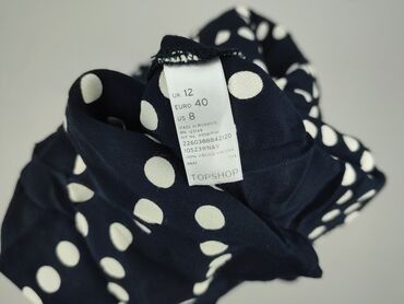 Sukienka Topshop w grochy - Marka: Topshop - Rozmiar z metki: EU 40 / US 8 / UK 12 - Kolor: granatowy w kobaltowe grochy - Fason: rozkloszowana spódnica z kontrafałdami, talia podkreślona marszcze...