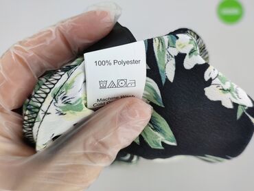 - Wzór: tropikalny/roślinny – czarne tło, zielone liście i białe kwiaty.