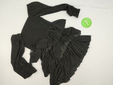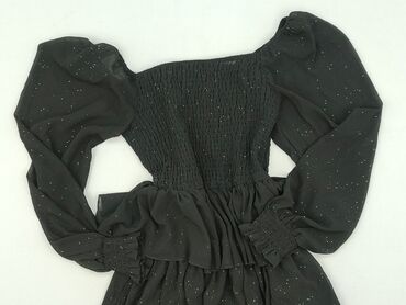 Sukienka damska Sinsay, rozmiar M - Krój: mini, rozkloszowany dół z falbanką - Rękawy: długie, lekko bufiaste, zakończone delikatną gumką - Dekolt: w kształcie litery V z subtelną stójką/falbanką ...