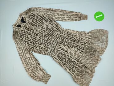 Sukienka RESERVED Eco Aware - Model: mini z długim rękawem - Wzór: beżowo‑czarny, inspirowany zwierzęcym printem (nieregularne kropki/plamki) - Dekolt: V z listwą zapinaną na guziki z przodu - Tal...
