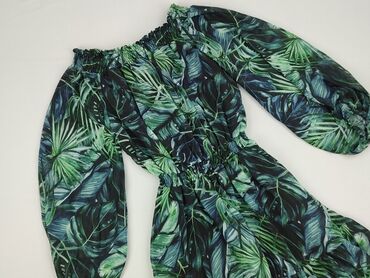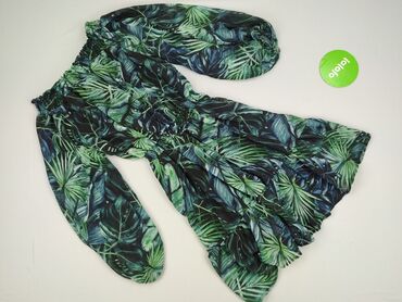 Sukienka Mohito, rozmiar 34. - Wzór: tropikalne liście w odcieniach zieleni i granatu. - Krój: mini z falbaną u dołu, podkreślona talia. - Dekolt i talia na elastycznych marszczeniach (smocked), po...