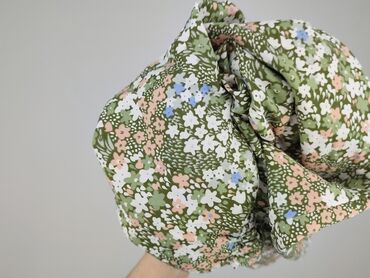 - Wzór: drobna łąka – kwiaty w odcieniach bieli, pudrowego różu i jasnego błękitu na oliwkowo‑zielonym tle