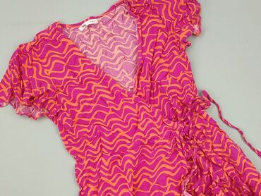 Sukienka Sinsay – rozmiar L - Krój: kopertowy/związany w pasie (wiązanie po bokach), delikatna falbana przy dole i przy rękawach. - Długość: mini. - Rękawy: krótkie, lekko rozkloszowane. - Wzór: g...