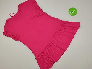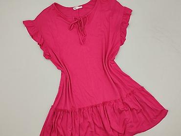 Sukienka damska, rozmiar XL - Kolor: intensywny róż/fuksja - Krój: luźny T‑shirtowy z krótkim rękawem, okrągły dekolt - Dół: asymetryczny, z doszytą falbaną/ryflowanym panelem po boku - Materiał: 1...Stan: