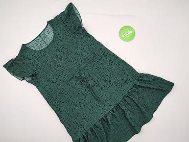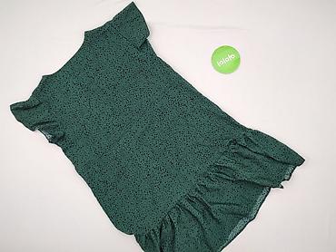 - Fason: prosta, lekko zwężana w talii, dół wykończony falbaną typu flounce; krótkie, delikatnie falujące rękawki