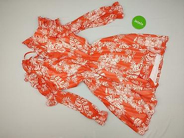 Sukienka damska w kwiaty, rozmiar XL - Fason: rozkloszowana, długość przed kolano - Dekolt: kopertowy w kształcie V - Rękawy: długie, bufiaste z gumką przy mankiecie - Talia: podkreślona, z elasty...