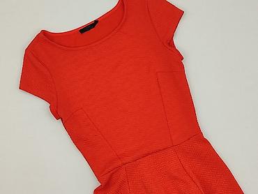 Sukienka Bershka - Kolor: intensywny pomarańcz - Rozmiar z metki: S (EUR S / USA S / MEX 26) - Fason: mini z efektownym wycięciem w talii (cut-out) - Dekolt: głęboki V - Rękawy: bufiaste 3/4 z ela...