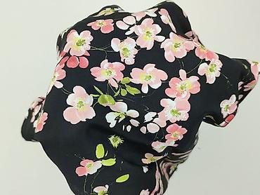 - Print: czarne tło z gęstym, wiosennym motywem różowo-białych kwiatów i zielonych listków