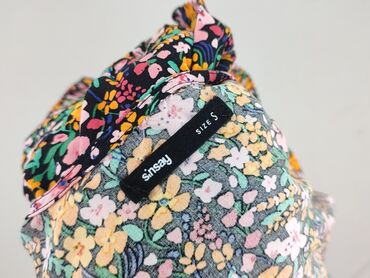 Sukienka Sinsay, rozmiar S - Fason: kopertowy z wiązaniem w talii, podkreśla sylwetkę - Długość: mini - Rękawy: krótkie, lekko bufiaste z marszczeniem przy zakończeniu - Dekolt: V (kopertowy) - Wz...Sukienka Sinsay, rozmiar S.