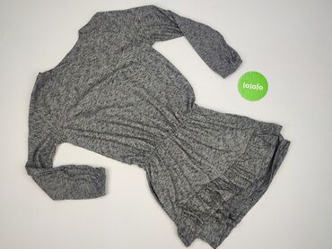 Sukienka damska MEGI Collection, rozmiar S–M. - Kolor: ciemny grafit/melanż - Krój: prosta, lekko oversize, długość przed kolano - Rękawy: 3/4 - Dekolt: V z ozdobną, satynową taśmą wiązaną na kark...Stan:
