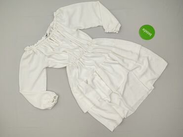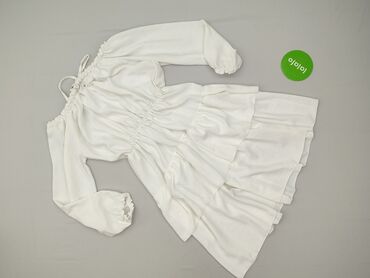 Sukienka damska marki MOON w kolorze beżowym. Sukienka ma długie rękawy i okrągły dekolt. Rękawy zdobione są falbankami i koronkowymi wstawkami z ażurowym wzorem. Z tyłu sukienka zapinana jest na z...