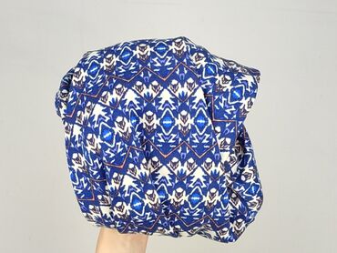 - Wzór: geometryczny/etniczny, w odcieniach granatu, niebieskiego, bieli i brązu, układ pasów po skosie.