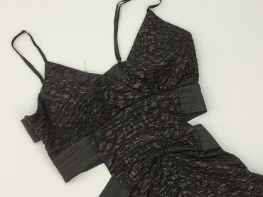 Czarna sukienka damska typu tube/bandeau. - Krój: bez ramiączek, dopasowana góra ze ściągaczem (smock) z tyłu, lekko rozkloszowany dół - Dekor: pas pod biustem z ozdobnymi prostokątnymi aplikacjam...Stan: