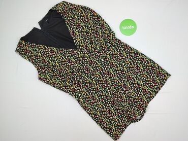 Sukienka damska RESERVED, rozmiar 42, Made in Europe. - Fason: rozkloszowana, lekko dopasowana w talii, długość przed kolano - Dekolt: w kształcie litery V z czarną lamówką - Rękaw: 3/4 - Wzór: gę...