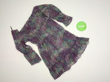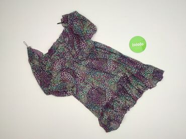 Marka i metka widoczne na zdjęciach. Rozmiar: S. Kolorystyka: wielobarwna (dominują fiolety i zielenie). Materiał: cienki, lekki, szyfonowy w dotyku. Asymetryczny, kobiecy krój podkreślający talię.