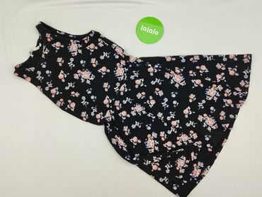 Sukienka damska Curvy Young, rozmiar XS. - Fason: odcinana w talii, rozkloszowany dół - Góra: gładka, czarna, na szerokich ramiączkach z dekoltem U z przodu i na plecach - Dół: materiał w kwiatowy...