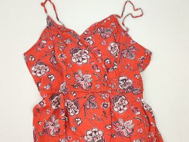 Sukienka damska na ramiączkach, w kwiatowy print - Rozmiar: 36 - Krój: lekko rozkloszowany dół, odcięcie pod biustem podkreślone czarną lamówką - Ramiączka: cienkie, regulowane wyglądają na elasty...