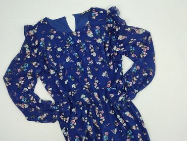 Sukienka damska CROPP, rozmiar XS. - Fason: mini z rozkloszowanym dołem i falbanami - Rękawy: długie, lekko marszczone - Dekolt: okrągły z delikatną stójką - Wzór: drobne kwiaty na czarnym tle (bi...