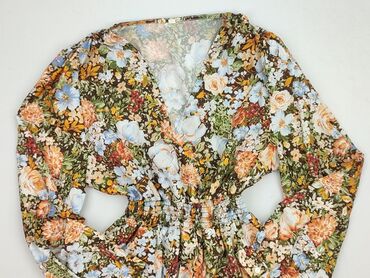 Sukienka w kwiaty, rozmiar L - Krój: mini/tunika z lekką falbaną przy stójce i na rękawach - Dekolt: stójka z listwą guzikową do połowy (kilka drobnych białych guzików) - Rękawy: długie, bufiaste,...