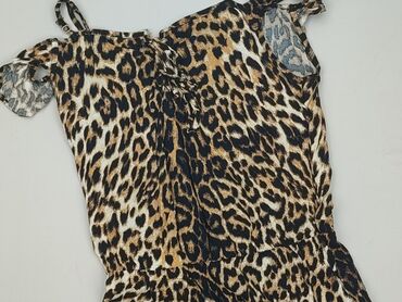 Kombinezon damski F&F w panterkę - Marka: F&F - Rozmiar z metki: UK 10 / US 6 / EUR 38 - Krój: bez rękawów, krótkie nogawki - Dekolt: okrągły, z ozdobnym rozcięciem z przodu - Talia: elastyczna, z...