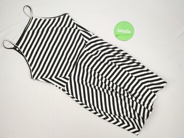 Sukienka w paski - Krój: prosta, dopasowana tuba - Długość: do kolan (midi) - Rękaw: krótki - Dekolt: okrągły - Wzór: czarno‑białe, poziome paski; na rękawach paski ustawione pod innym kątem dla k...