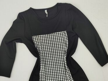 Sukienka damska z długim rękawem - Krój: dopasowany, mini, z okrągłym dekoltem - Wzór: klasyczna pepitka (czarno-biała) na panelu przednim; tył i rękawy gładkie, czarne - Materiał: elastyczna dzian...
